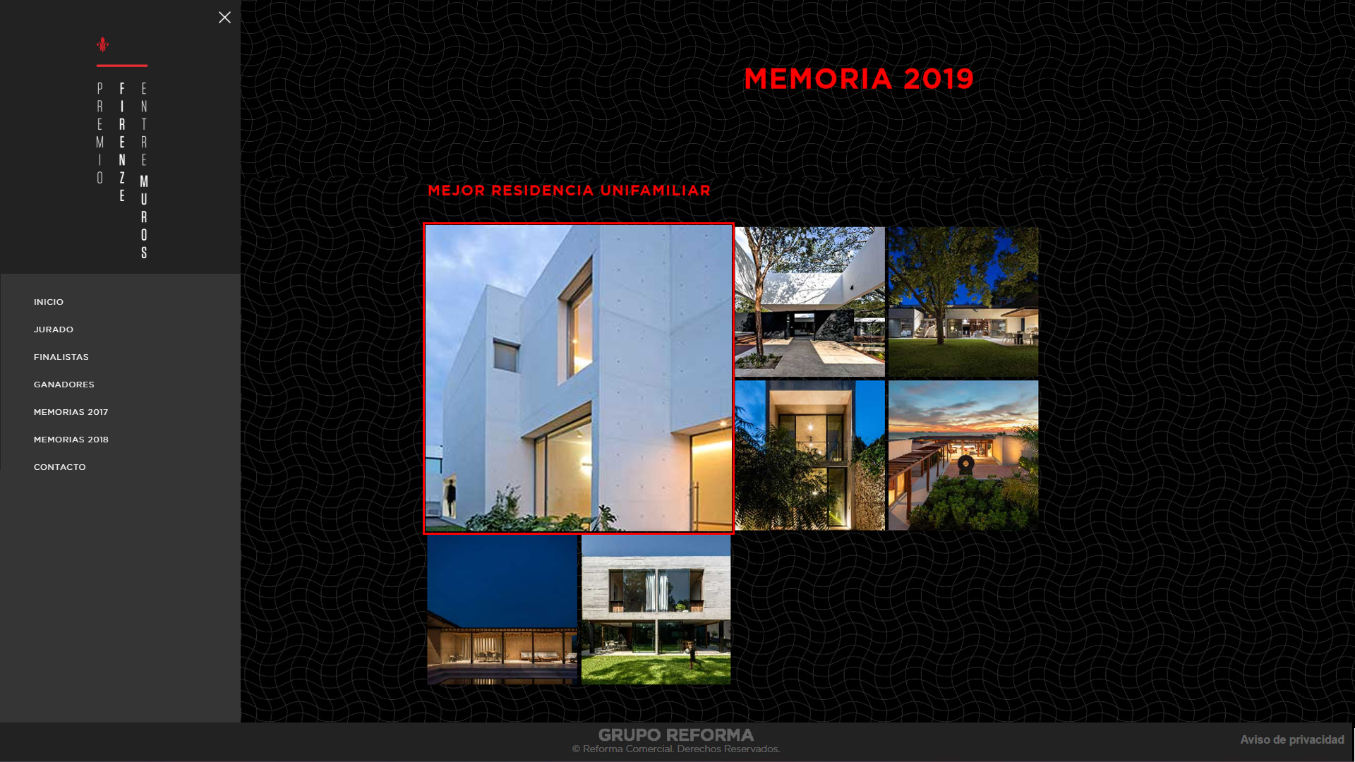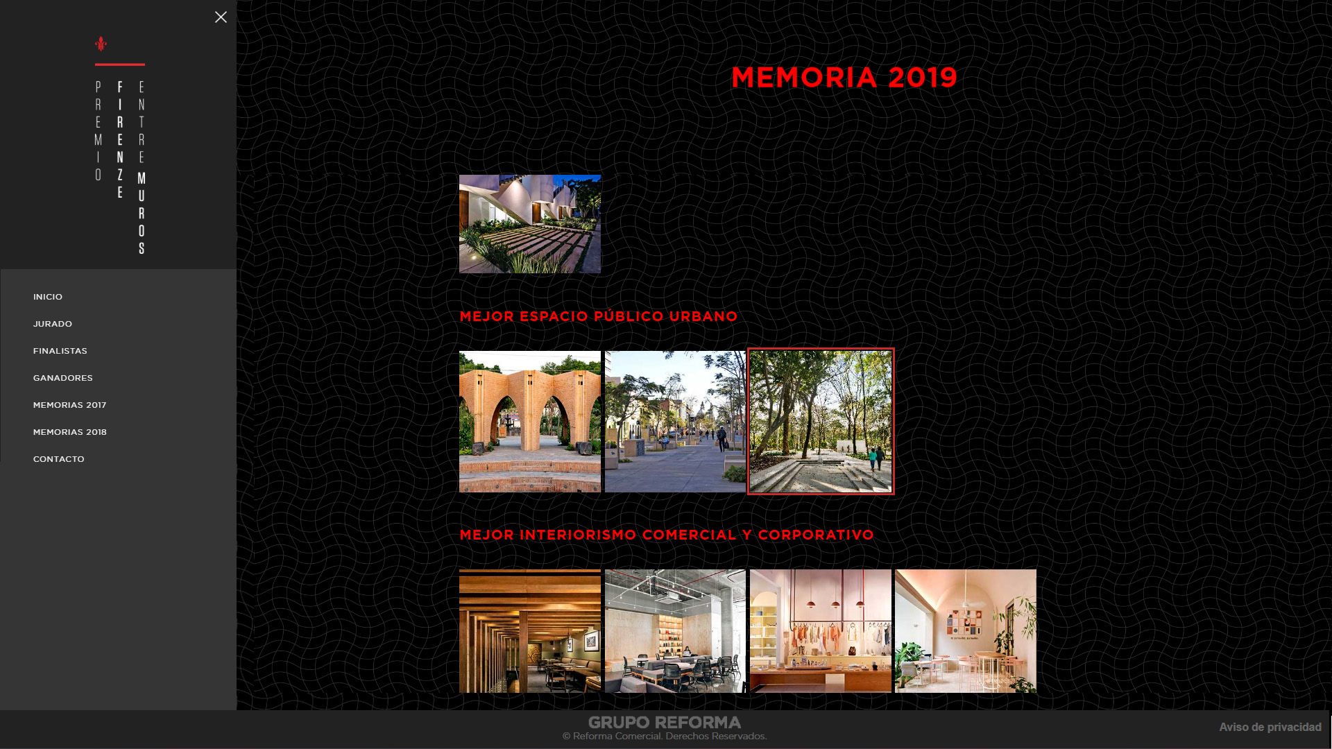 El Premio Firenze Entremuros 2019, celebrado en junio de ese año, reconoció lo mejor de la arquitectura y el interiorismo en México. Organizado por Firenze en colaboración con Grupo Reforma, el certamen destacó 62 proyectos finalistas en ocho categorías, incluyendo Mejor Espacio Público, Mejor Espacio Corporativo, Mejor Residencia Unifamiliar y Mejor Espacio Habitacional Multifamiliar.
