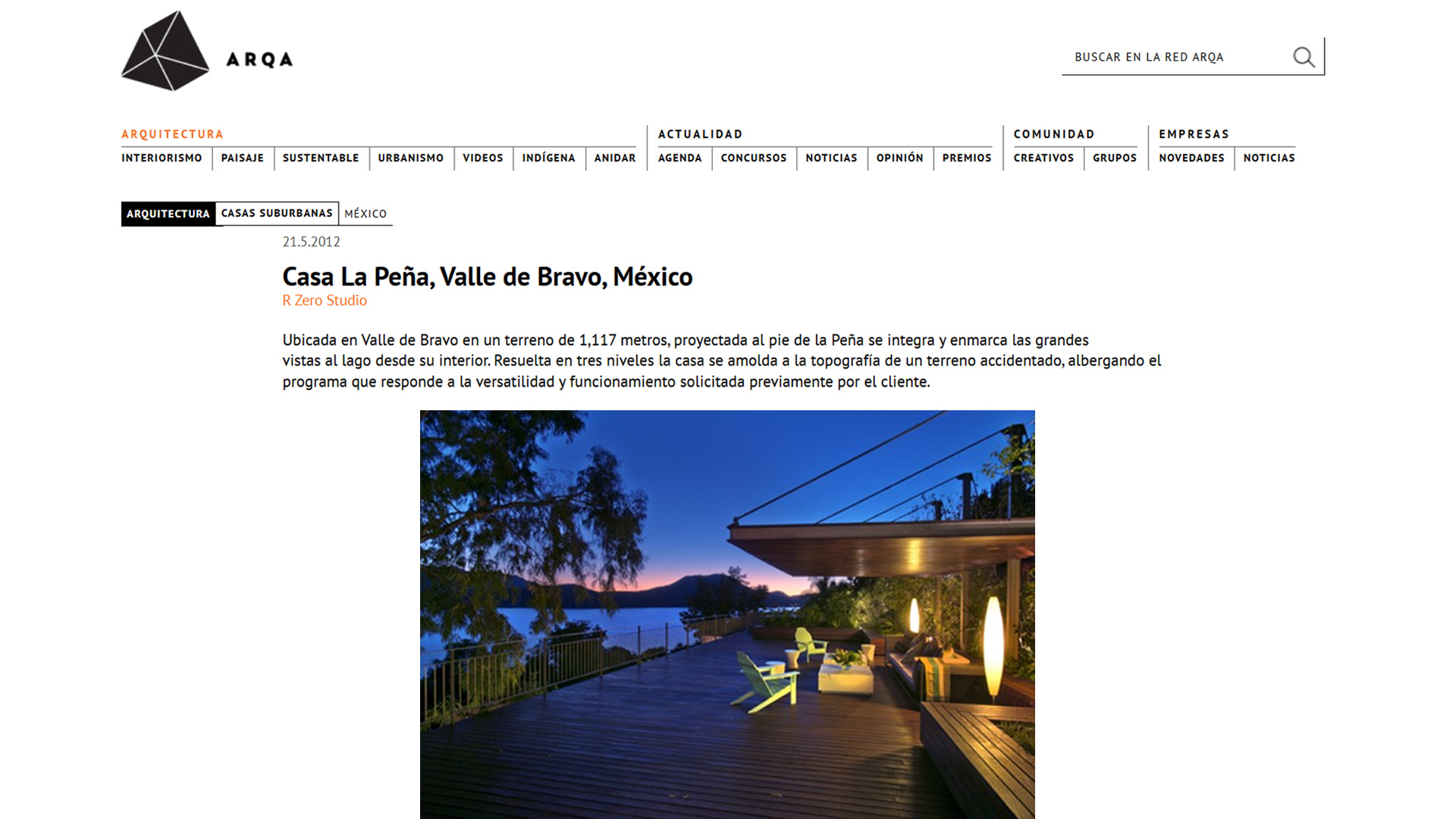 Ubicada en Valle de Bravo en un terreno de 1,117 metros, proyectada al pie de la Peña se integra y enmarca las grandes vistas al lago desde su interior. Resuelta en tres niveles la casa se amolda a la topografía de un terreno accidentado, albergando el programa que responde a la versatilidad y funcionamiento solicitada previamente por el cliente.