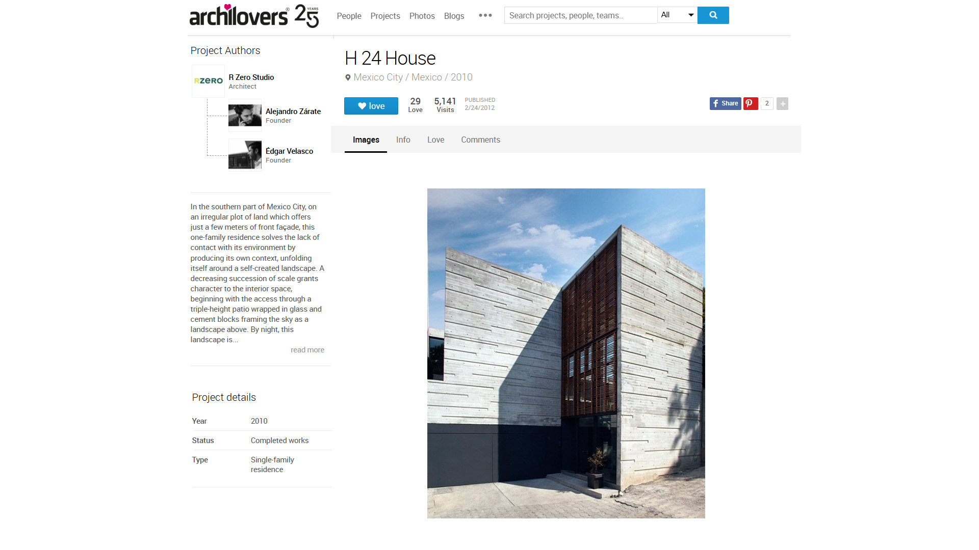 Mexican practice r-zero studio, has recently compelted the ‘H24 house’ in mexico city, mexico. an irregular shaped plot forms an introverted plan, wrapping itself around an internal self-created landscape. a triple height patio formed with standard cement blocks frames the sky as a secondary view, while CMU blocks partially inset within the wall conceal a light to produce the appearance of a constellation.