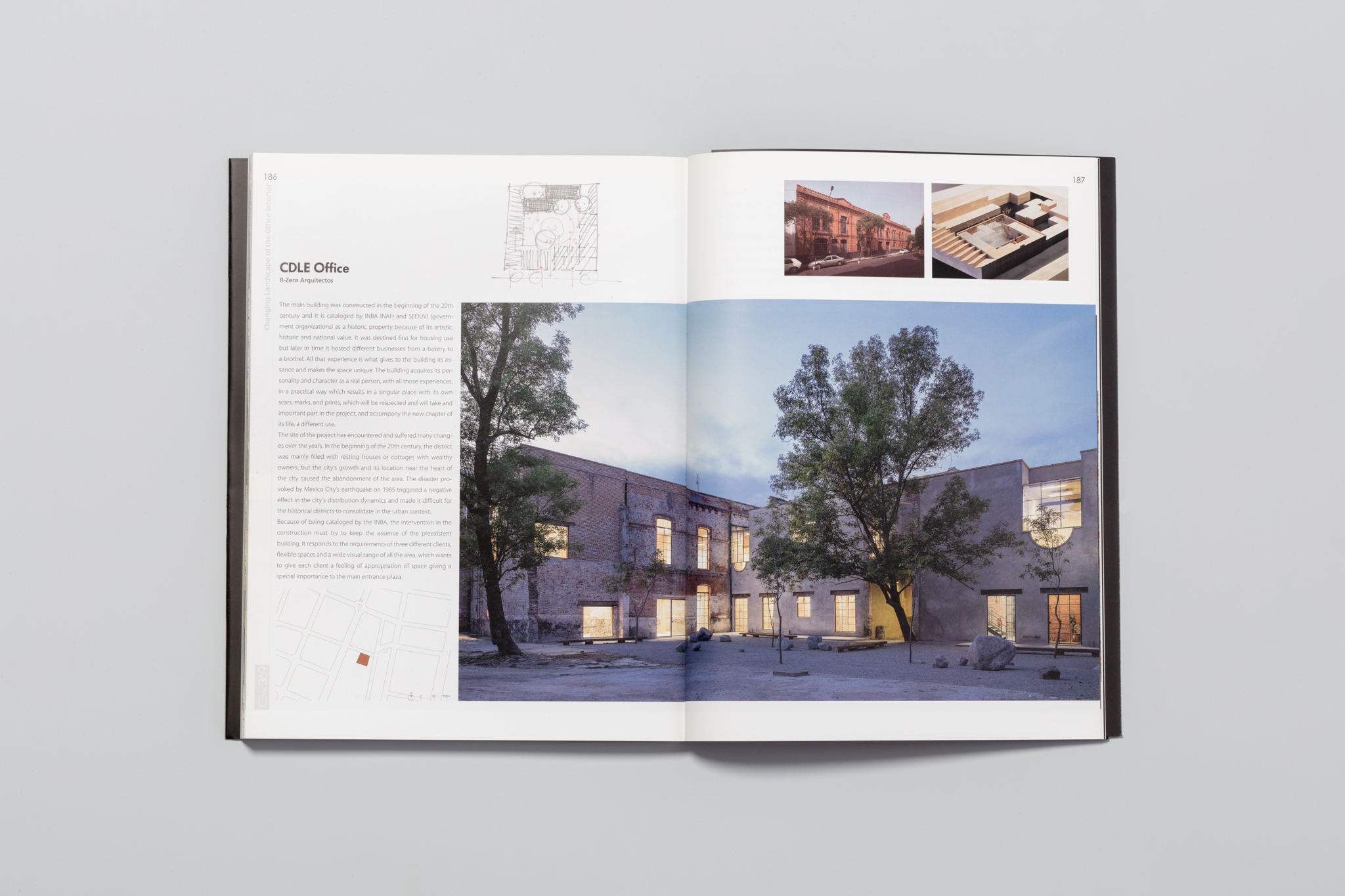 "Crear sin construir – suena como una meta casi imposible pero innovadora", según el estudio mexicano R ZERO Estudio, refiriéndose al hecho de que su proyecto de oficinas CDLE se ubica en una estructura catalogada de principios del siglo XX en el Centro Histórico de la Ciudad de México. Originalmente una zona de viviendas para gente adinerada, la estructura de madera y ladrillo en ruinas – con su distintivos arcos invertidos y su llamativa fachada de ladrillo rojo – ha servido desde entonces como panadería e incluso como burdel, imbuyéndola de una rica historia de lo que R ZERO denomina "cicatrices, marcas e impresiones."